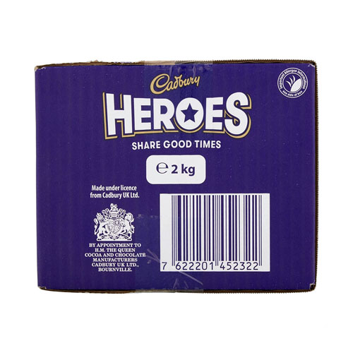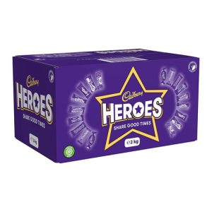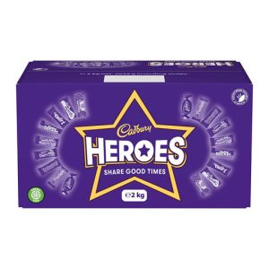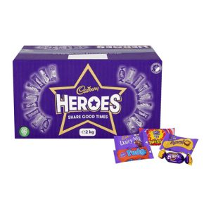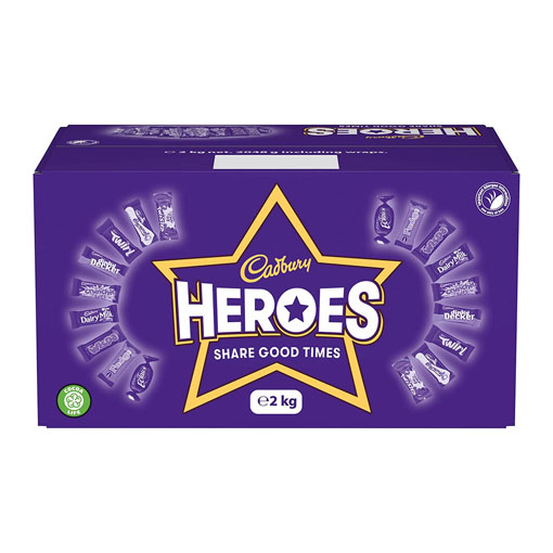 Cadbury Heroes Bulk Sharing Box This 2 kg Cadbury Heroes Chocolate Box is an excellent gift for Christmas, birthdays or any other occasion. Enjoy this assortment of delicious Cadbury chocolates and toffees, made with cocoa beans that are sourced through the Cocoa Life Sustainability Program.