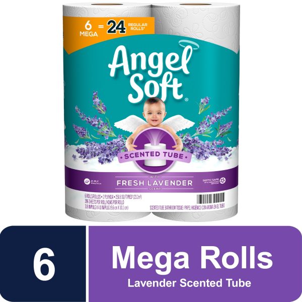 Angel Soft Toilet Paper, Fresh Lavender Scent, 6 Mega Rolls (= 24 Regular Rolls)