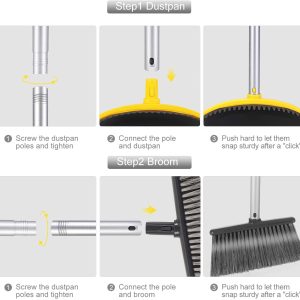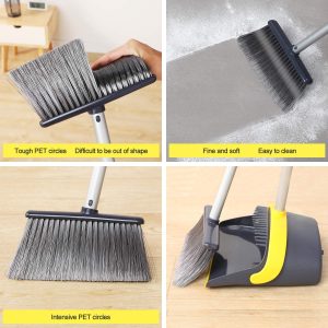 - Broom and Dustpan Set Soft 4 Layer Angle Broom bristles: Dustpan Comes with high quality broom with bristle construction that will not absorb water, longer life, environmentally friendly fiber made from recycled PET. And we use a special technology to produce the broom head, to make it more durable, and better than ordinary broom.