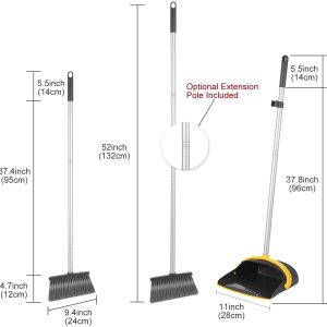 - Broom and Dustpan Set THE PERFECT HEIGHT: Forget about brooms that are too short and inconvenient! This broom is extra-tall at 52?? so you will never have to bend down ever again! The long broomstick will also allow you to reach every corner and spot, even under the couch, so you can keep your space spotless!