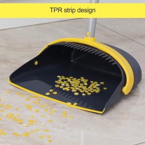 - Broom and Dustpan Set CONVENIENT DUSTPAN: This amazing dustpan was designed for your convenience so you can have perfect results with no hassle! The dustpan has a rubber lip on the edge so that all the dust and dirt will be swept right in the dustpan instead of under it. It also has built-in teeth so you can comb the broom bristles and keep them clean from debris and excessive dirt.
