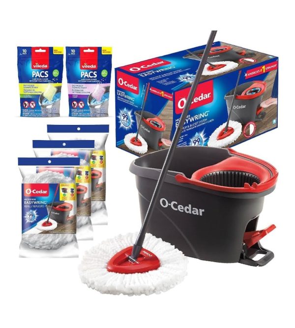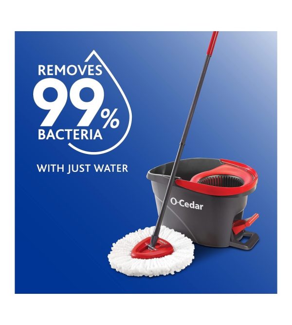 REMOVES OVER 99% OF BACTERIA W/ JUST WATER: O-Cedar’s EasyWring Microfiber Spin Mop & Bucket Floor Cleaning System provides a deep-cleaning solution for all your at home needs by effectively removing dirt, grime and over 99% of bacteria with just water! It is safe on all hard floor surfaces, including finished hardwood, wood, laminate, tile, vinyl, and more.