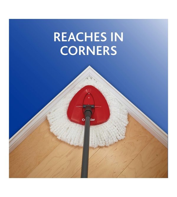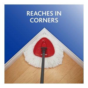 REACHES IN CORNERS: Due to the patented triangle mop-head and ability to rotate 360 degrees, the EasyWring Mop can reach and clean deep into corners, under furniture, alongside baseboards, and between tile.