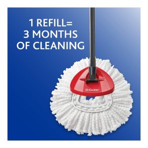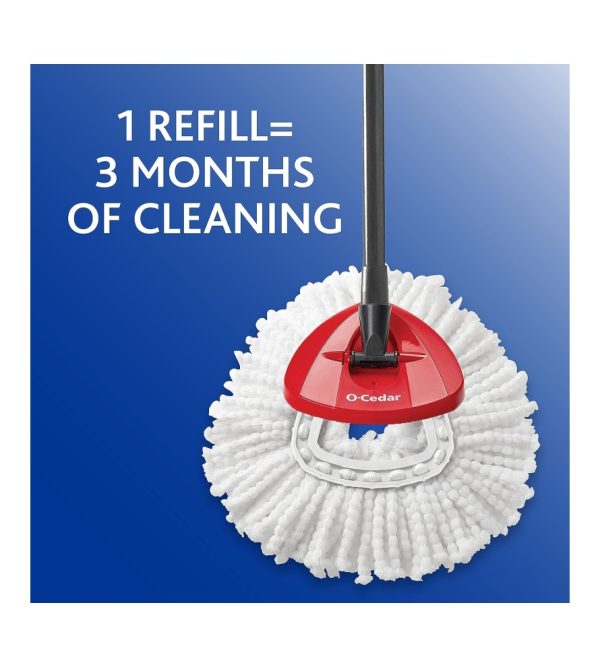 Enjoy a fast and fun floor cleaning experience! The O-Cedar EasyWring Spin Mop and Bucket Cleaning System features hands-free wringing thanks to our unique foot pedal spin mop design, so you have less mess when mopping. Control the amount of water and moisture applied to floors making for easier wringing and quicker-drying floors. O-Cedar’s EasyWring microfiber mop delivers a better clean by effectively removing dirt and grime with just water. The EasyWring is a better way to truly clean your floors! Anyone can use this mop, as the telescopic handle adjusts up to 51?? in length with the mop head attached. This mop is safe and effective for all hard floor surfaces, such as hardwood, tile, vinyl, and more! The microfiber mop head refill is reusable and machine-washable! Replace the mop refill pad every 3 months for optimal results.Features: Hanging Loop/Hole,Reusable,Washable